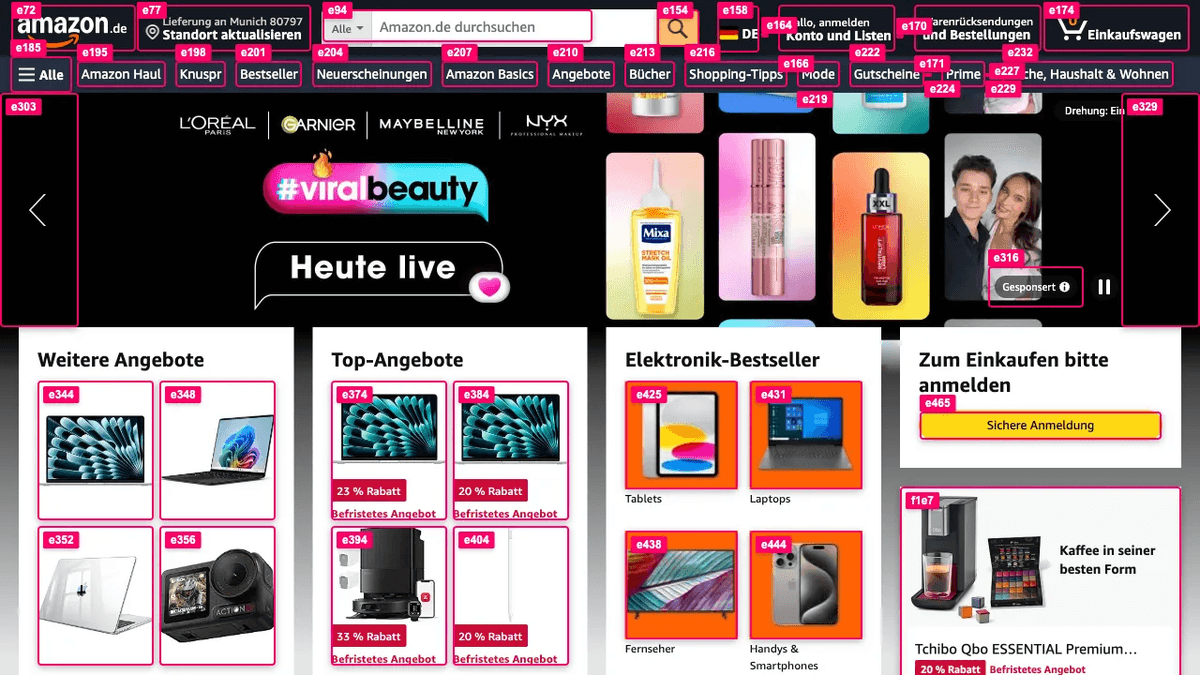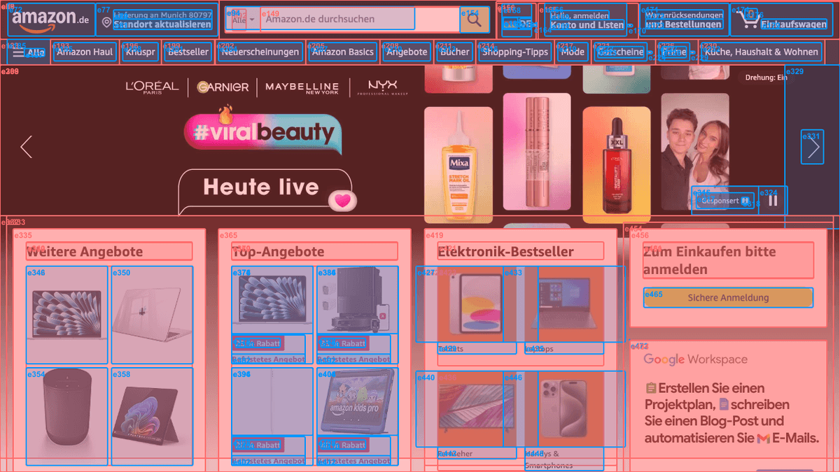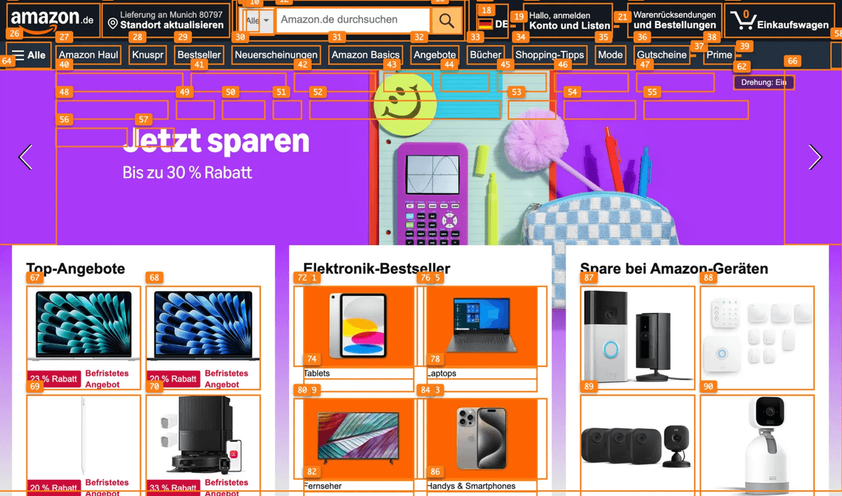 SoM screenshots present an interesting design challenge. We need to mark all interactive elements in screenshots, drawing a box and number for each element.