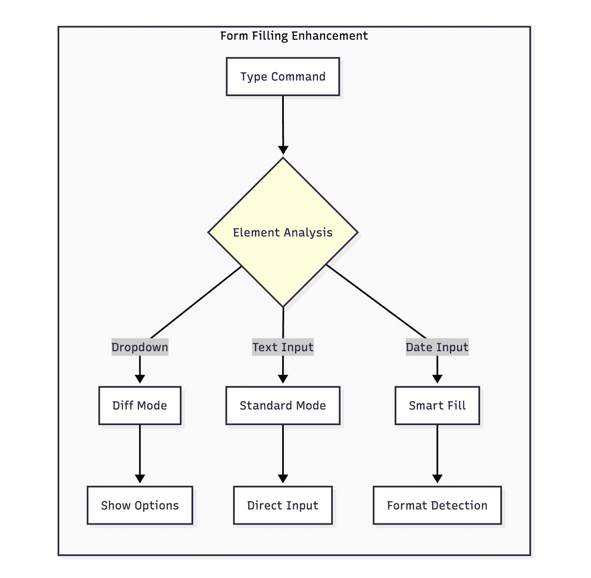 The third issue was the reliability of form filling. Real-world web forms come in all shapes and sizes: some input boxes are hidden in multiple layers of nesting, some dropdown menus are dynamically loaded, and some date pickers only show the actual input box after clicking. Relying purely on Playwright’s basic APIs made it difficult to handle these edge cases.