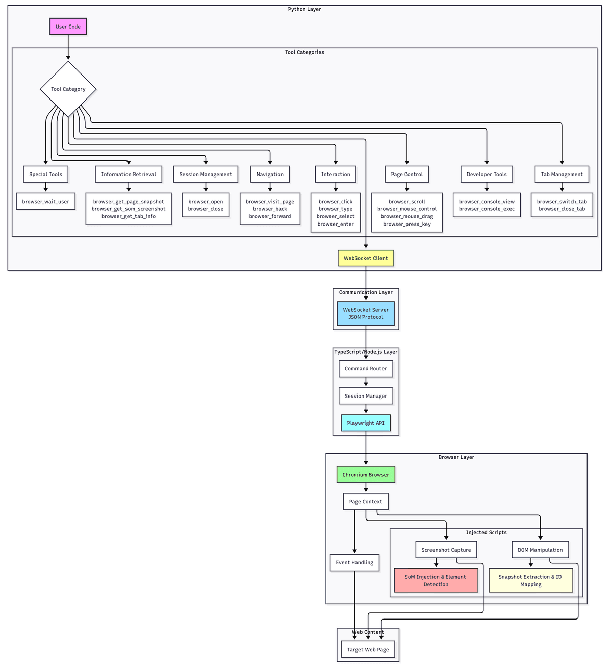 During the development of the CAMEL AI framework, we have been using browser automation tools to enable AI Agents to complete complex web tasks. The initial implementation was pure Python, based on Playwright Python bindings. However, as use cases increased, we gradually discovered some unavoidable pain points.