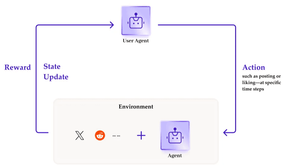 Imagine LLM agents living in a digital twin of our world. They continuously read content from the internet, write code, use calculators, and even post to real Twitter accounts—just like humans. One agent might spread misinformation inside OASIS, only to be challenged by another who Googles the claim and replies with a counterpoint. Another might grow tired of only interacting with other agents and decide to share their experiences with humans online.