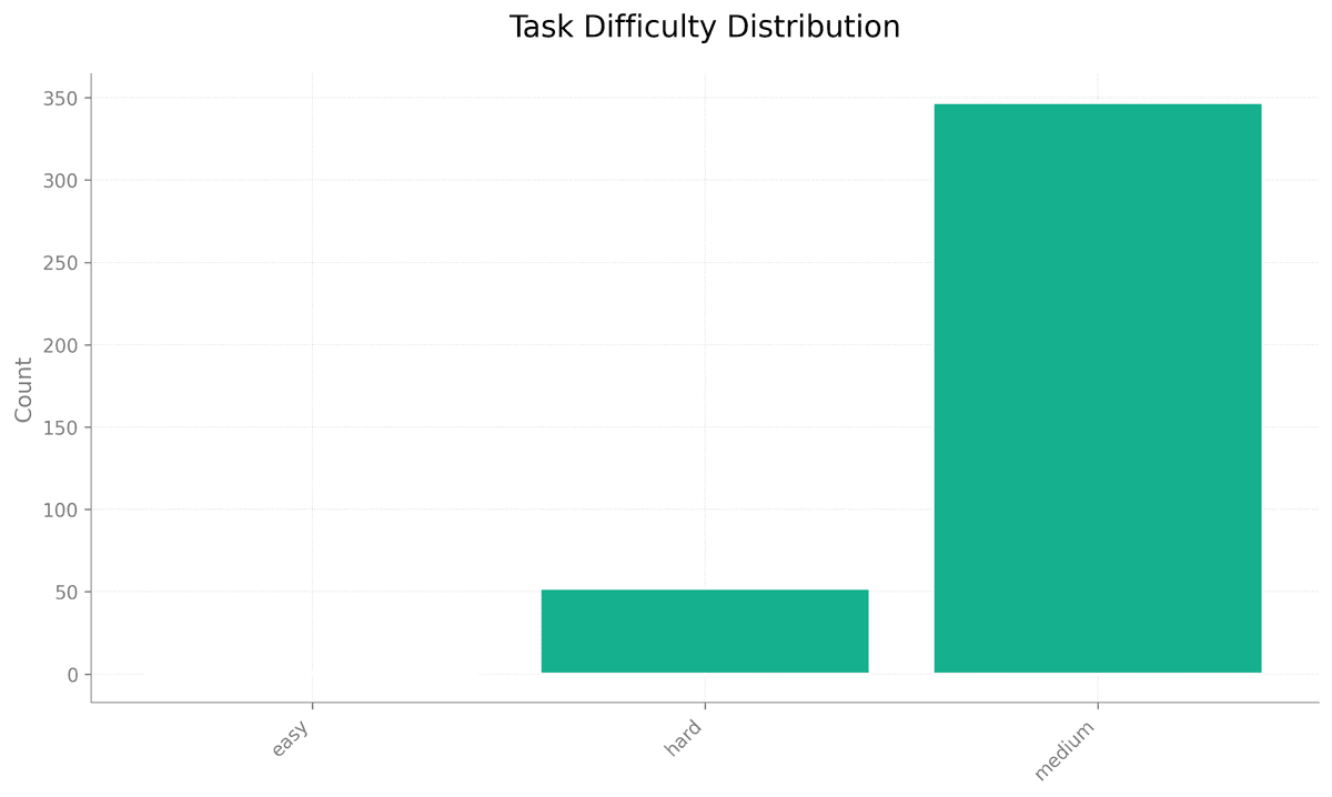 Note, only one of the tasks were considered easy in the current synthetic dataset, while most of them are medium, since technical diversity is enforced via prompt.